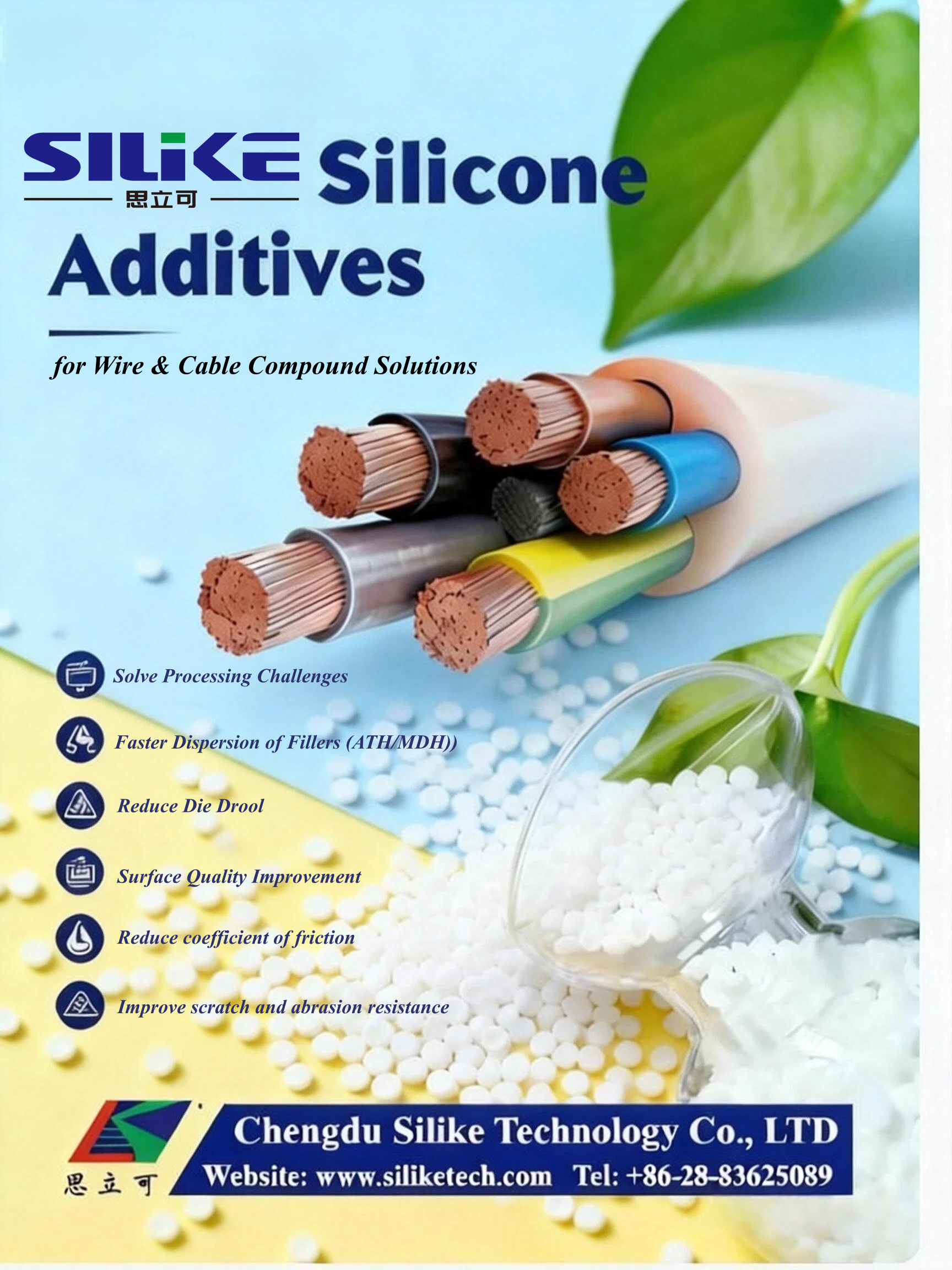 √Lêzêdekirinên silîkonî yên SILIKE di heman demê de karîgeriya hilberînê û kalîteya rûyê berhemên têl û kabloyê yên qedandî baştir dikin.
